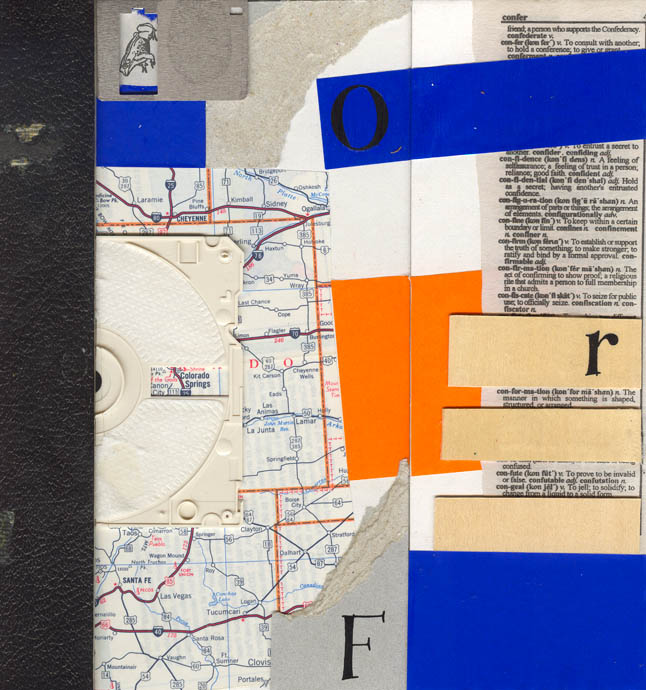 collage with map & old disk drive on matboard
