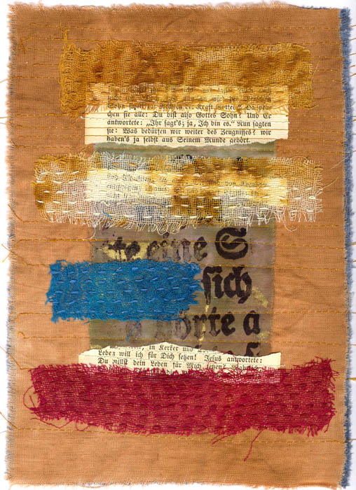 collage with fabric & stitching on art paper