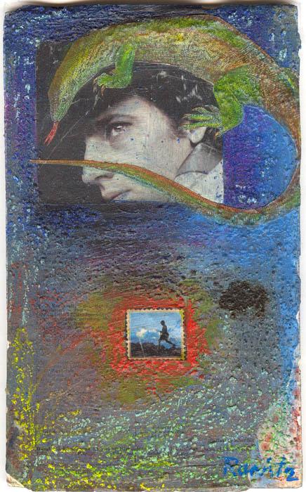 textured collage on foamboard on matboard