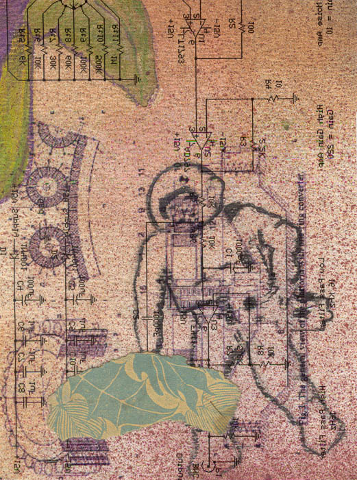 small collage on thick watercolour paper, laminated (15 X 11cm, 6" X 4½")