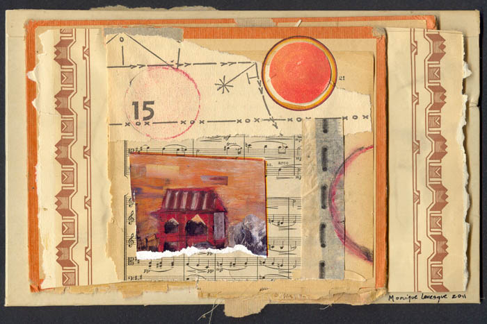 collage on book covers on cigarbox lid on matboard