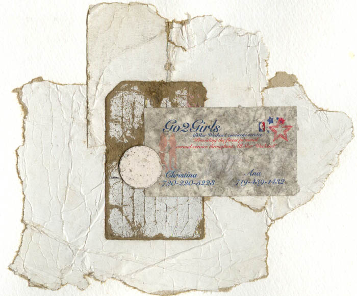 collage of found objects on watercolour paper