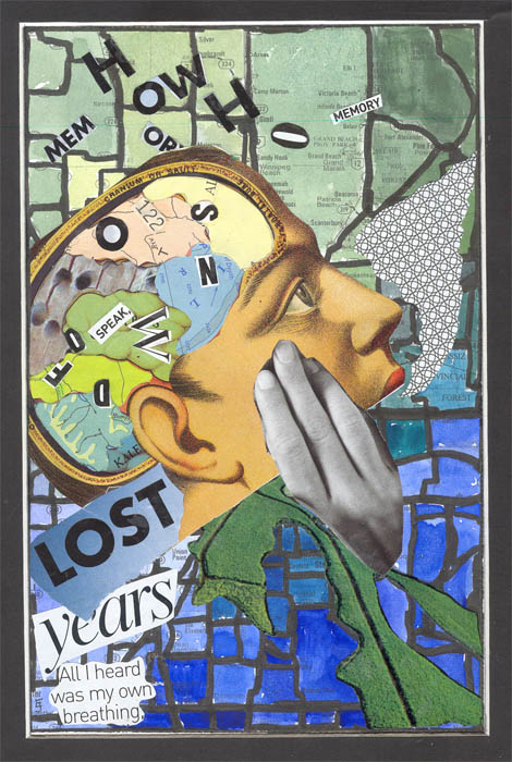 collage on canvas paper, matted