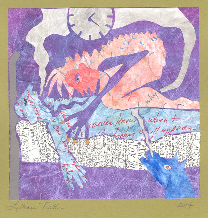 Each 7" X 7" collage of dyed tyvek and commercial paper is mounted (with archival paste) on an 8" V 11" piece of 100lb card stock. |