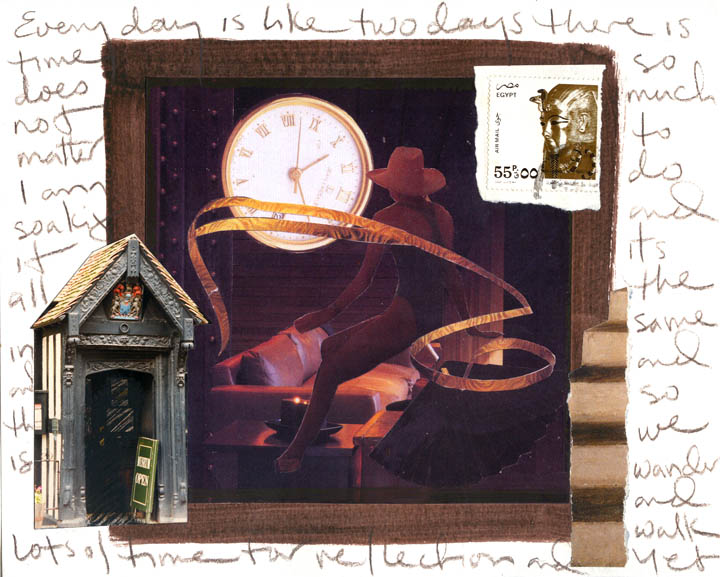 collage on watercolour paper, accompanied by small book with the whole series of Postcards collages.