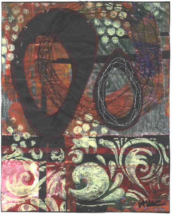 paper collage with paint & stiching