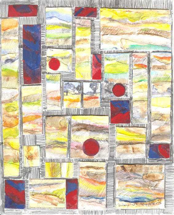 collage on painted art card on watercolour paper