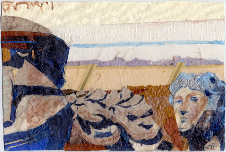The sixteen collages make up an image of a bas-relief mural in Winchester, VA.