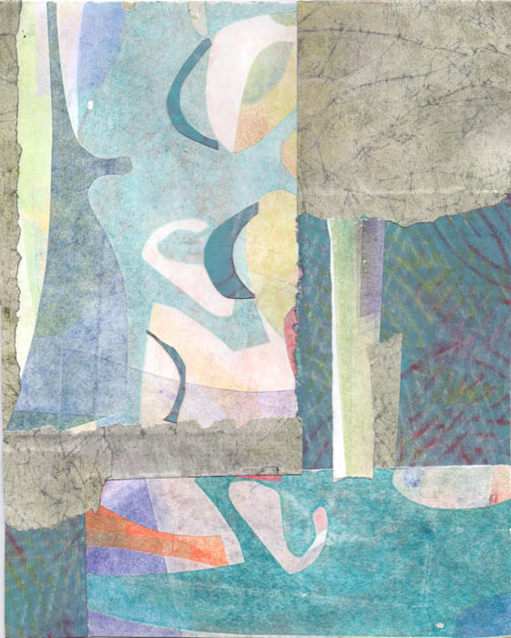 collage of hand-printed papers on art card