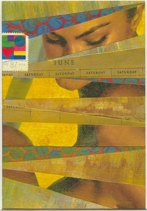 collage on watercolour paper, matted, signed on matboard
