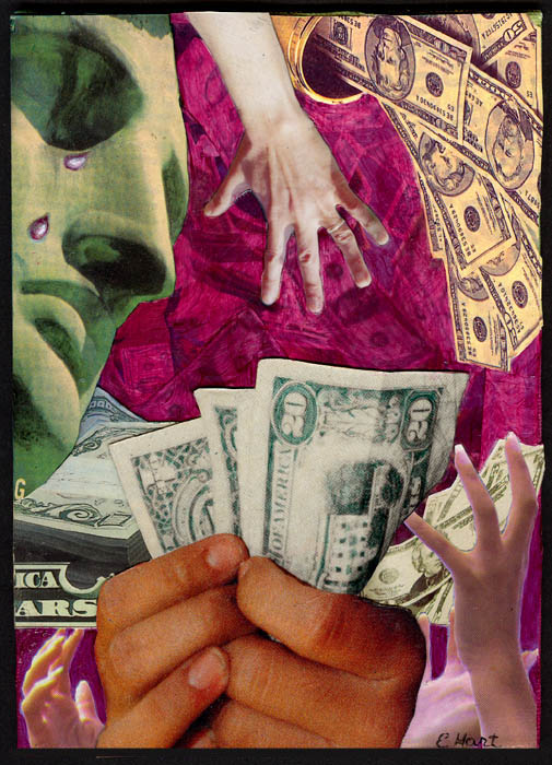 Greed Click on image to return to the exhibition Greed collage on canvas board Erica Hart Erica Hart from Hankins, NY, USA Email Erica at howica @ earthlink.net (remove the spaces)