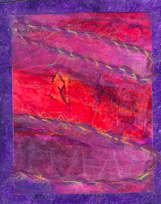 collage with fibre on watercolour paper