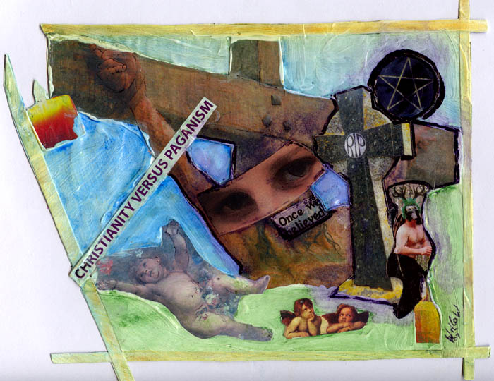 Christianity versus Paganism Click on image to return to the exhibition Christianity versus Paganism collage of paper and card Willow Willow from Hawera, New Zealand