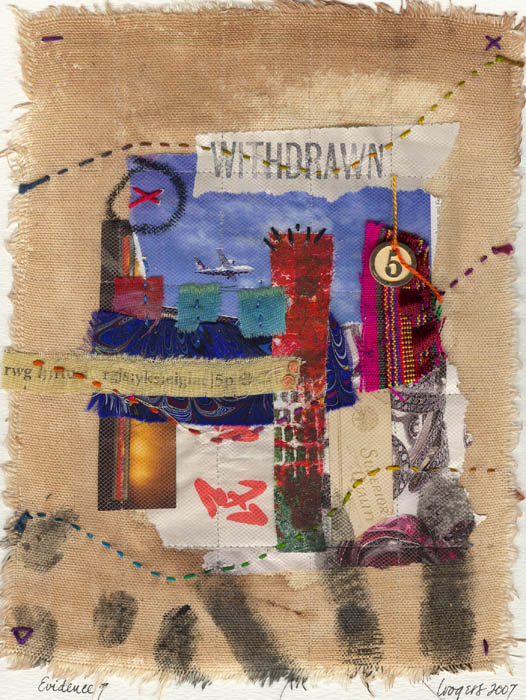 fabric, stitching, mixed media collage on fabric, on watercolour paper