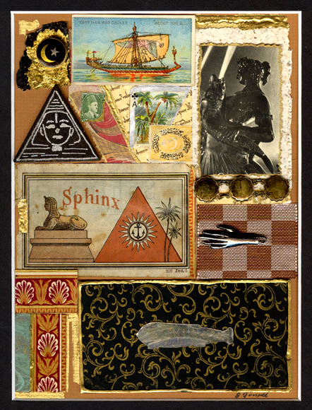 Victorian ephemra, silk ribbon from Victorian hat band, silver hand, gold leafing, brass bracelet fragment,
