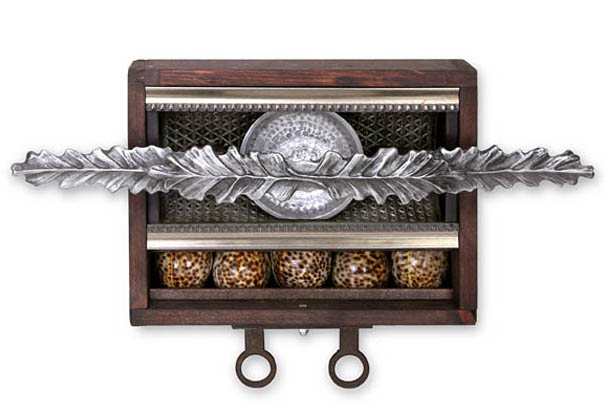 | Meryl Ingredients: Door Pull, Tiger Cowry Shells, Glass Door Knob, Food Grater, Metal Dish, Misc. Hardware 18"w x 10"h x 5"d robbii, $1800 US | |