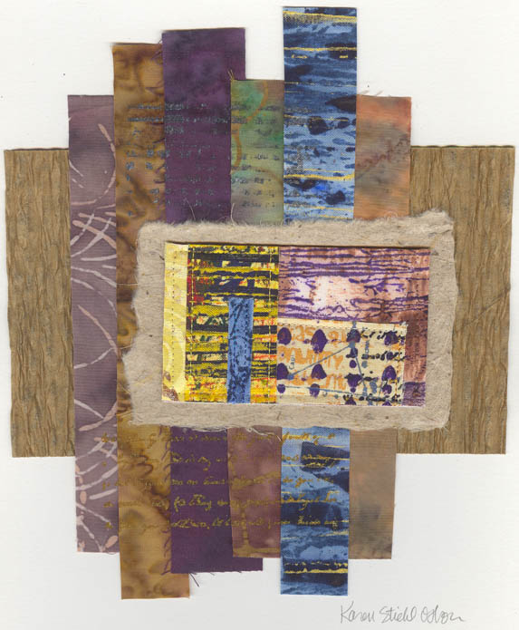 collage of material and papers on thick watercolour card