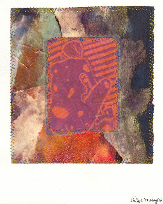 collage (organza, print) on thick watercolour paper