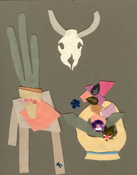 collage of thin suede on matboard