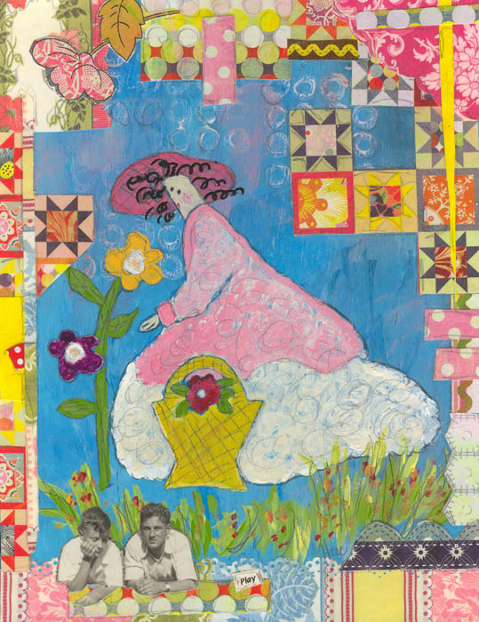collage on corrugated-core card