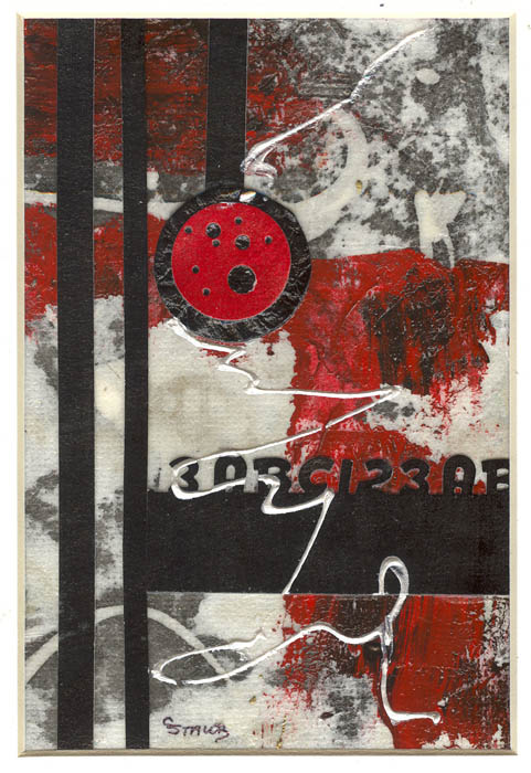 mixed media collage on watercolour paper, backed with foamboard & matted
