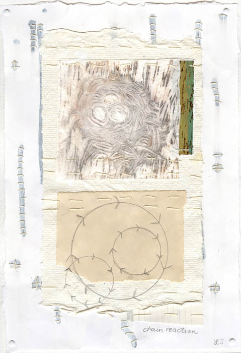 collage with embossing & stitching on watercolour paper