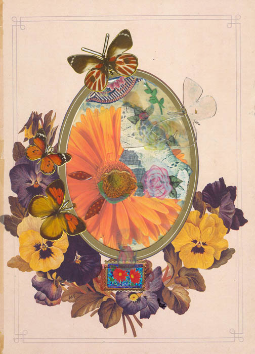 collage in and on old photo album page