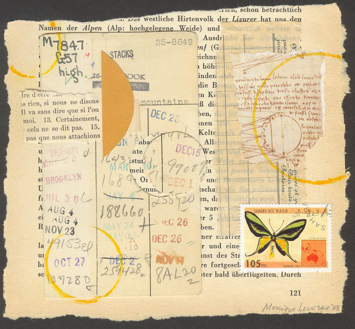 Flight Click on image to return to the exhibition Flight collage on matboard by Monique Levesque Monique Levesque lives in Portland, OR, USA Email Monique at cameo21 @ q.com (remove the spaces)