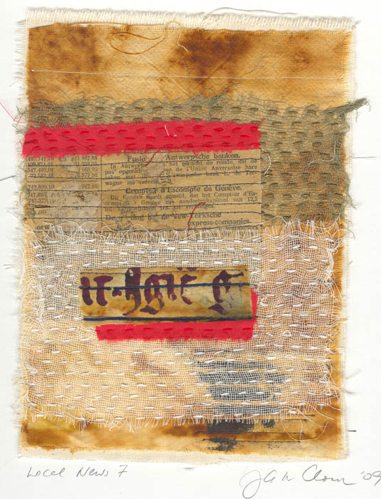 collage on fabric on watercolour paper