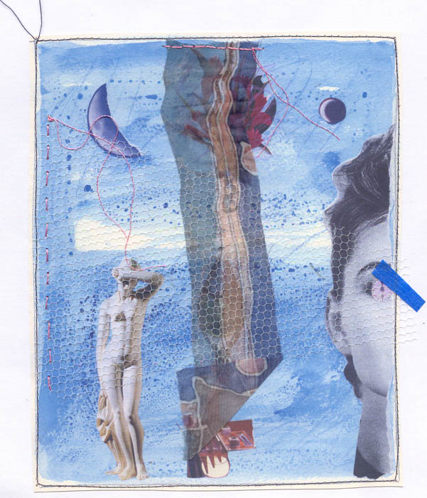 collage on art card, with small book