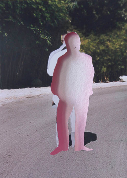of printed images and photographs severed from their origins. These are stand-ins for incremental reversals of presence and changes of