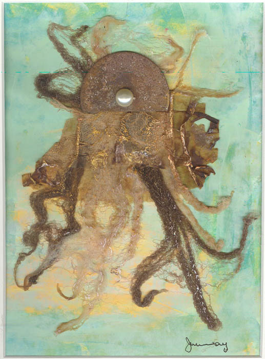 collage on watercolour paper on coreflute board, matted