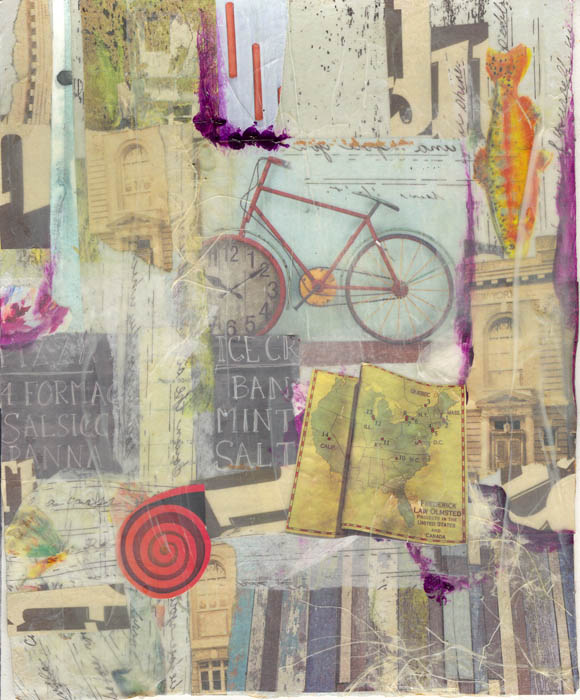 collage and wax on thick watercolour paper