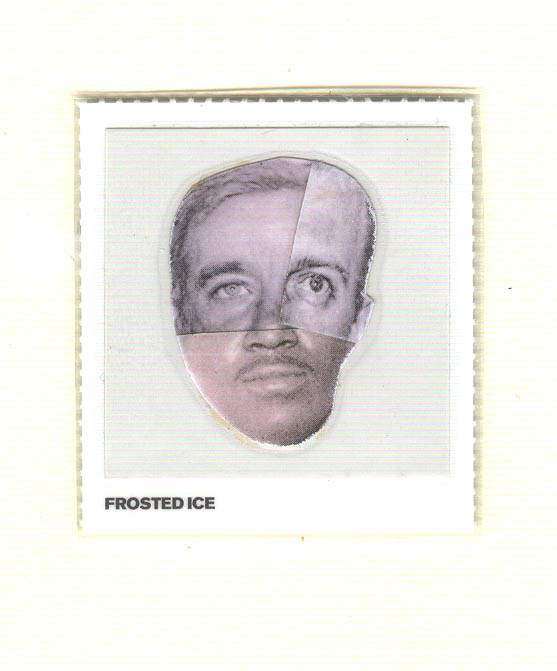 small collage (6 X 5 cm) on paint sample card, laminated, on watercolour paper (28 X 19 cm)
