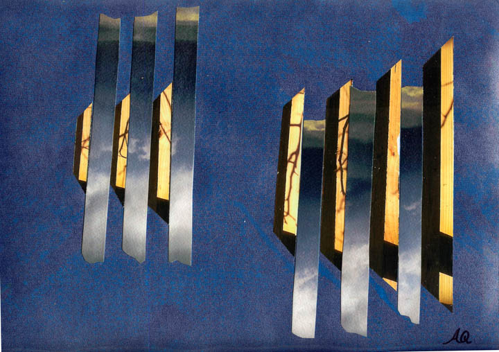 collage of spliced photos on card with oil pastel rubbing