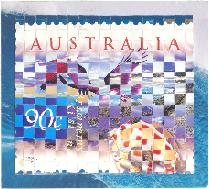 collage of woven paper on matboard