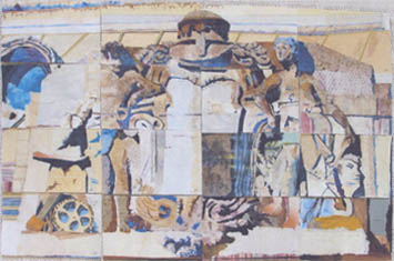 The sixteen collages make up an image of a bas-relief mural in Winchester, VA.