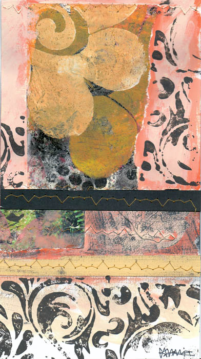 collage of painted paper, with stitching