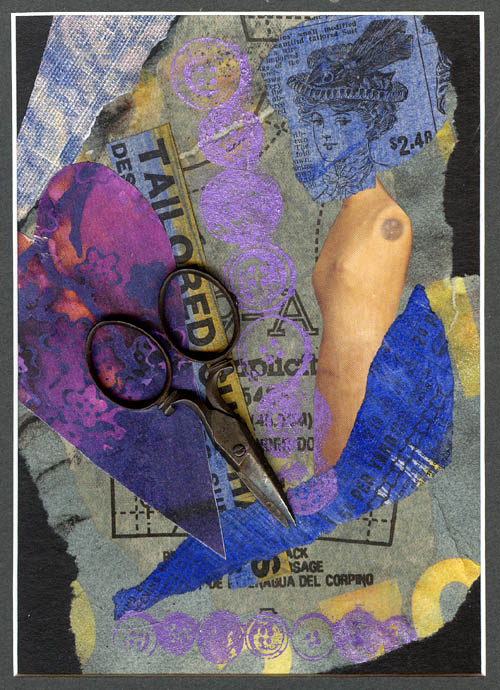 paper collage & scissors, on foamboard with mat
