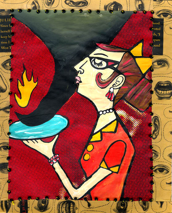 paper collage with beads & paint on card