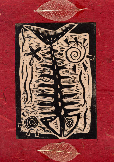 paper collage with skeleton leaves on card