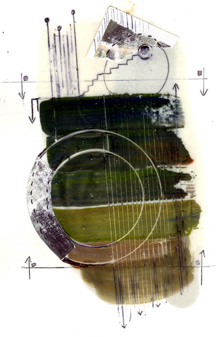 mixed media collage (paper, pen & encaustic wax) on watercolour paper