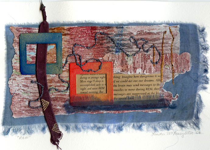 paper, fabric,thread and objects on watercolour paper.