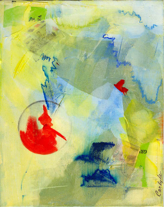 collage and paint on 8" x 10" canvas board