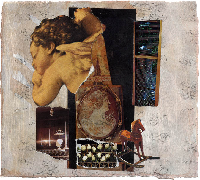 (accompanying each of Mimi's collages is a small hand-bound book containing the poem "A Magic Story")