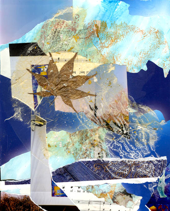 collage (with leaf in Japanese rice paper) on card