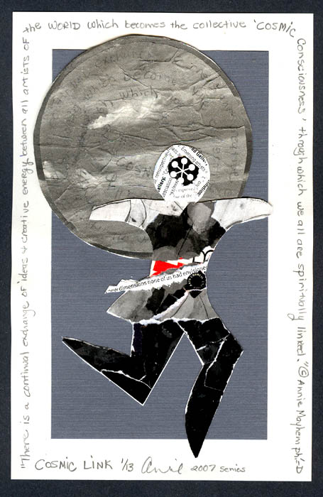 The text around each "global" artist icon is a quote from my book-as-art, a millennium project titled "Anne Mayhem ph!=D---a Handmade Passport to Planet A"