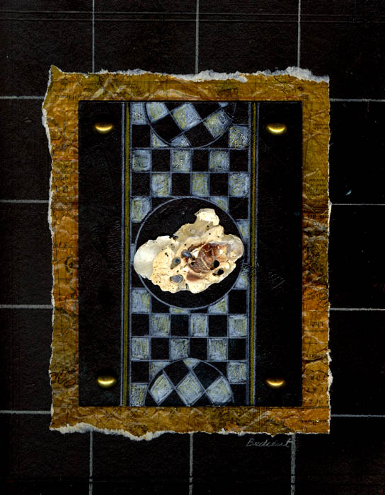 collage with shell on matboard