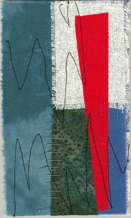 fabric & stitching collage on pastel paper