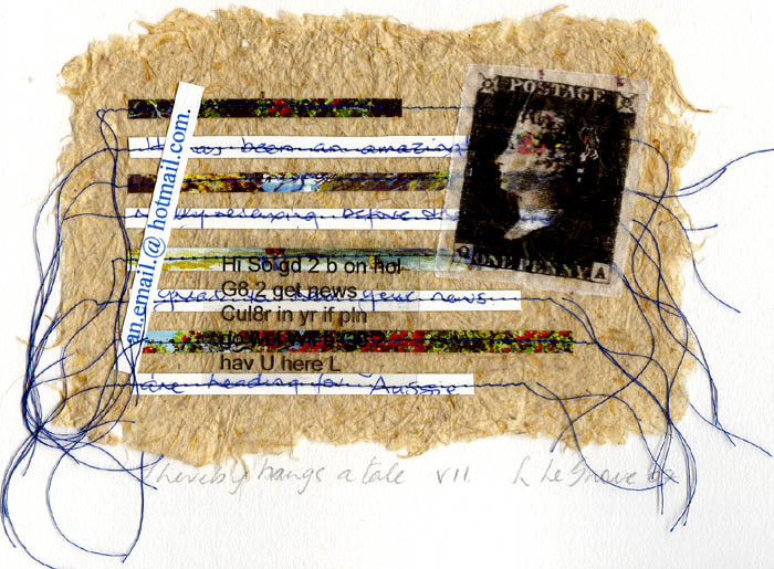 collage with transparency, handmade paper & stitching on watercolour paper